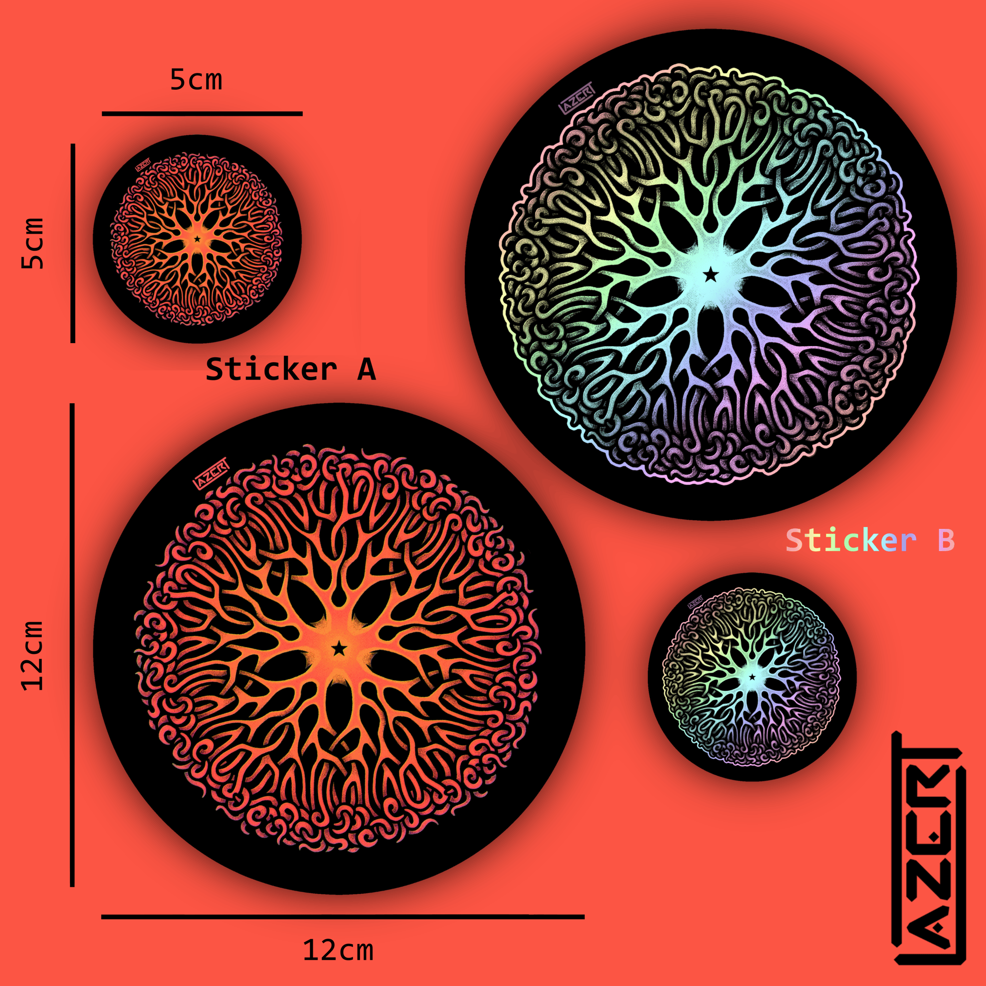 Regular stickers are 5 x 5cm