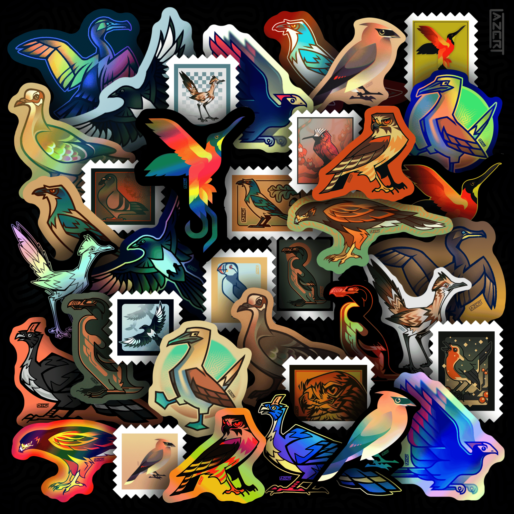 Bird-themed bundle featuring a selection of bird stickers from my store, including: