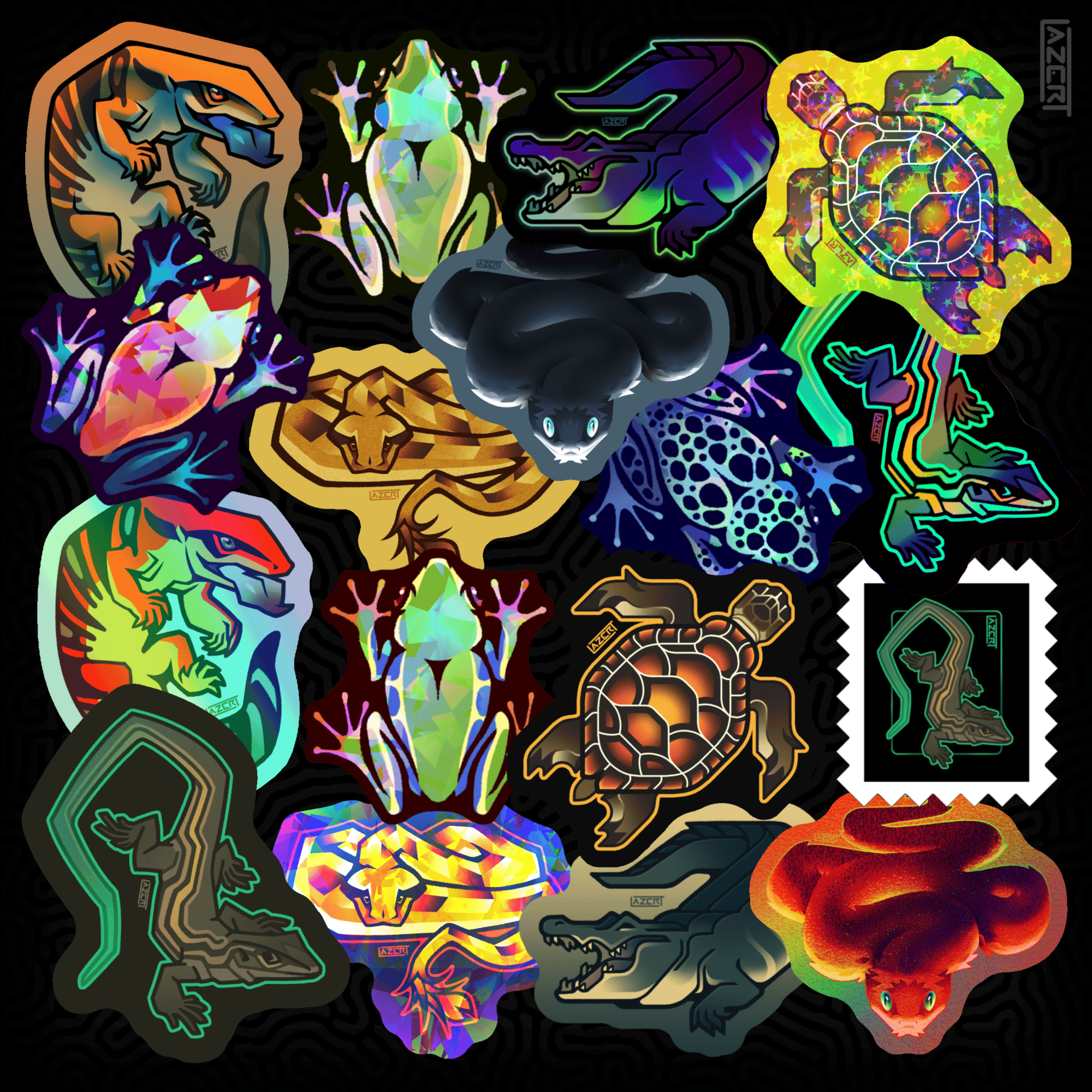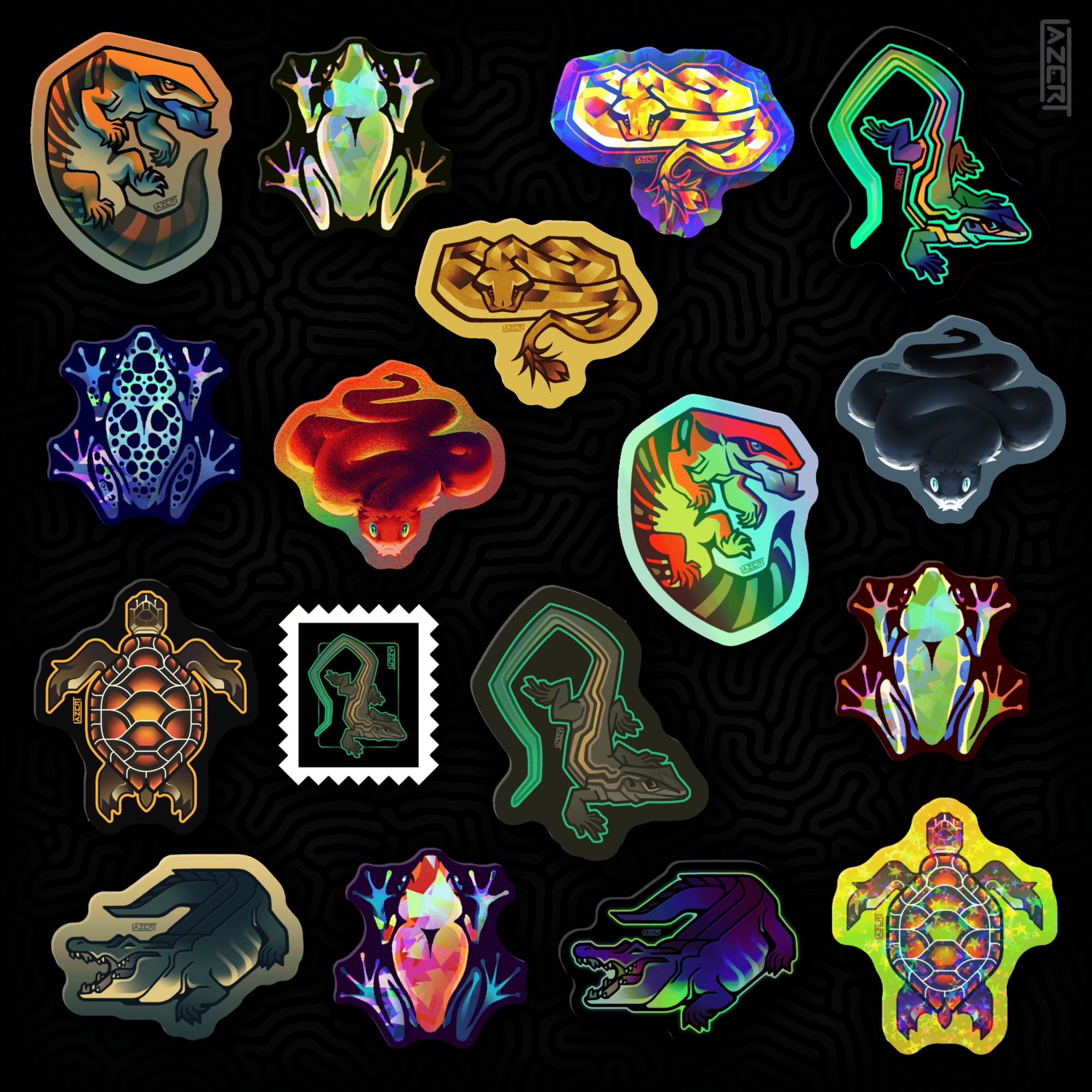 Herpetology-themed bundle featuring a selection of reptile and amphibian stickers from my store, including: