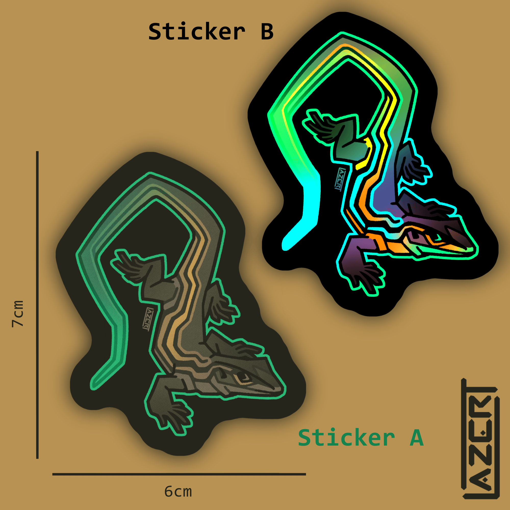 Sticker A is non-holographic and water resistant (not waterproof)